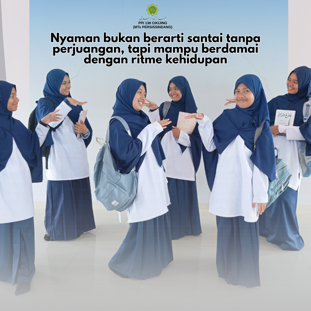Nyaman bukan berarti santai tanpa perjuangan, tapi mampu berdamai dengan ritme kehidupan pesantren. Ia mulai paham bahwa belajar bukan hanya soal menguasai pelajaran, tapi juga melatih jiwa untuk sabar, disiplin, dan menghargai waktu.